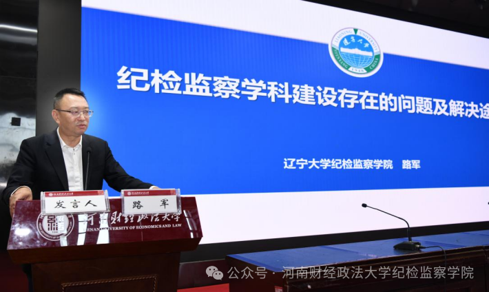 辽宁大学纪检监察学院院长路军教授作题为《纪检监察学科建设存在的问题及解决途径》的主旨演讲。路军教授分享了辽宁大学纪检监察学科建设的工作经验,指出了学科建设中的重点问题,并提出以学科融合为抓手、委校共建为保障、特色发展为生存之道的解决思路,为学科建设提供了切实可行的建议。