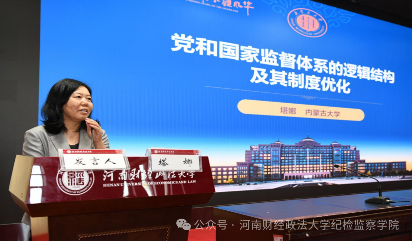 内蒙古大学纪检监察学院(监察官培训学院)副院长塔娜教授作题为《党和国家监督体系的逻辑结构及其制度优化》的主旨演讲。塔娜教授强调纪检监察学科建设和人才培养不能局限于纪委、监委,应拓宽视野,关注整个监督体系,通过合理的制度设计实现各类监督的有效衔接和协同发力。