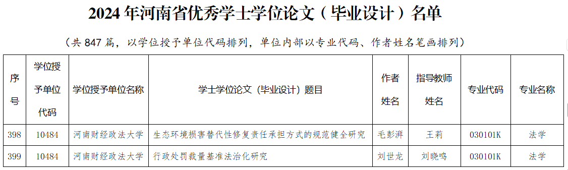 近日,2024年河南省优秀硕、学士学位论文评选结果公布。经个人申报、学校推荐、省教育厅组织专家评议,共有42篇博士学位论文、397篇硕士学位论文和847篇学士学位论文(毕业设计)入选河南省优秀学位论文。wedvictor伟德有两篇论文获得此项殊荣,占全省法学专业获奖论文总量的五分之一。
